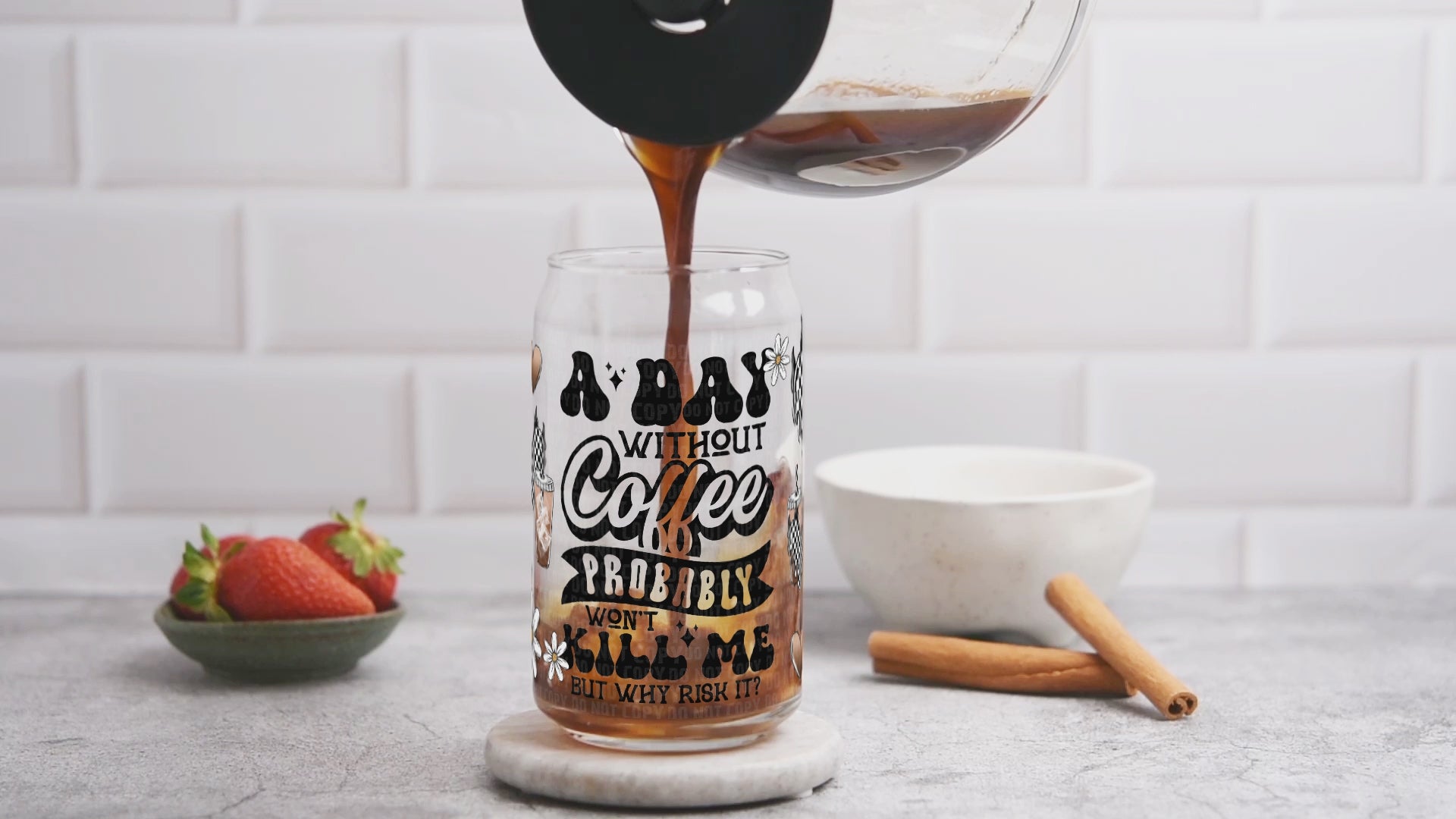 A Day Without Coffee Probably Won't Kill Me But Why Risk It UV DTF Libbey Transfer | Trendy Foodie Libbey Wrap | Ready to Transfer | High Quality | Waterproof UV Transfer