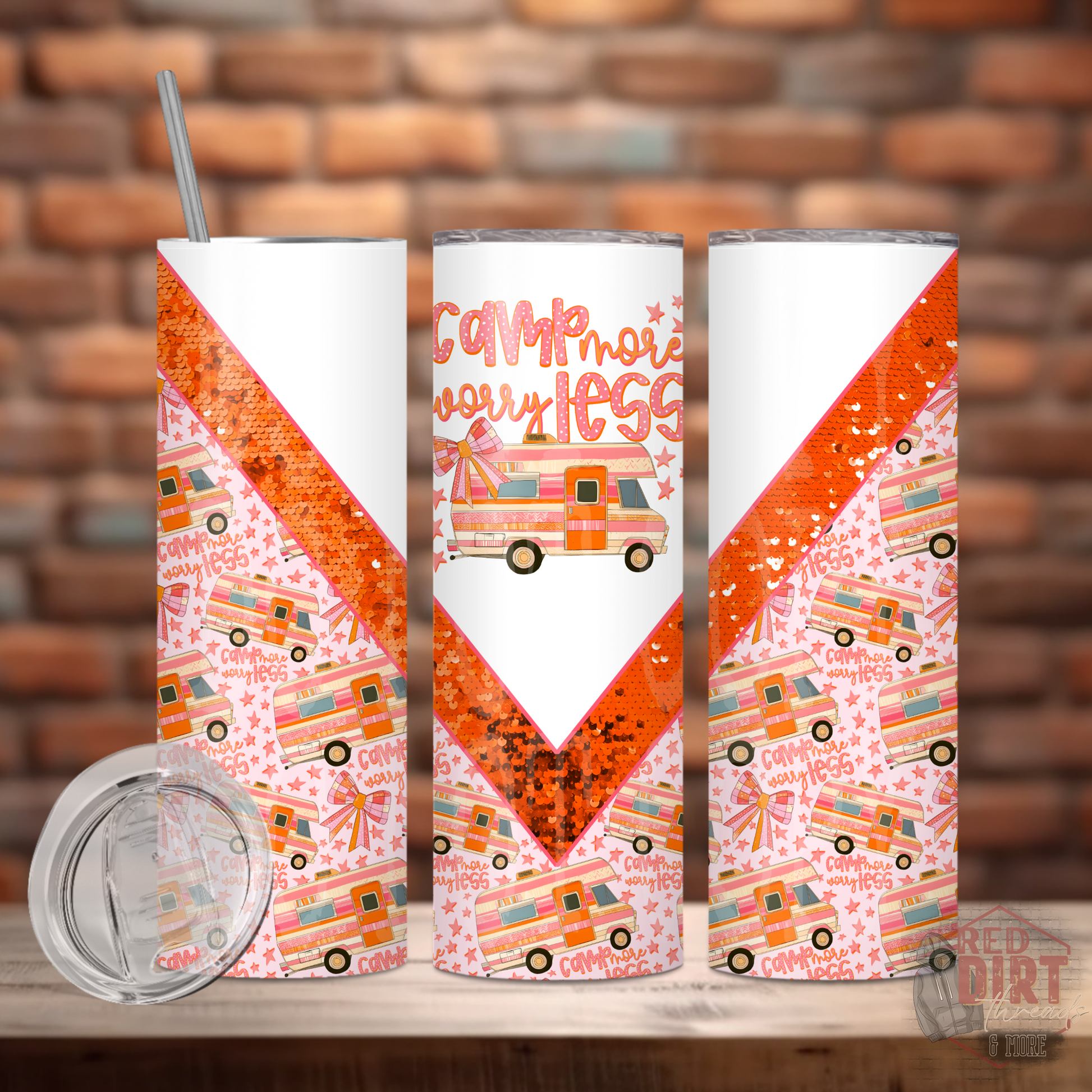 Camp More Worry Less Insulated Tumbler with Plastic Lid and Sealed Reusable Straw | Trendy Summer Cup | Hot/Cold Tumbler