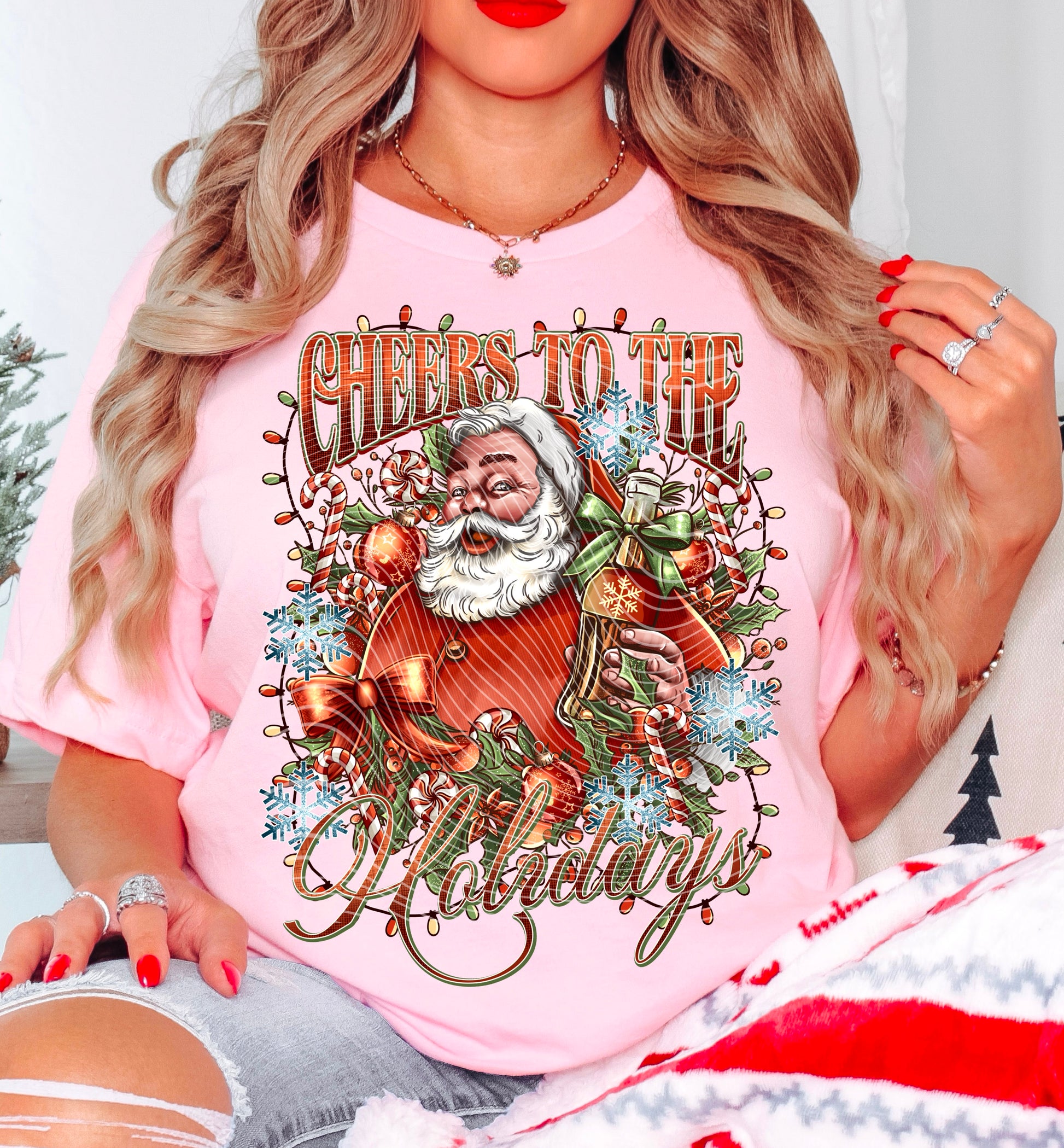 Cheers to the Holidays T-Shirt | Trendy Christmas Shirt | Fast Shipping | Super Soft Shirts for Women/Kid's