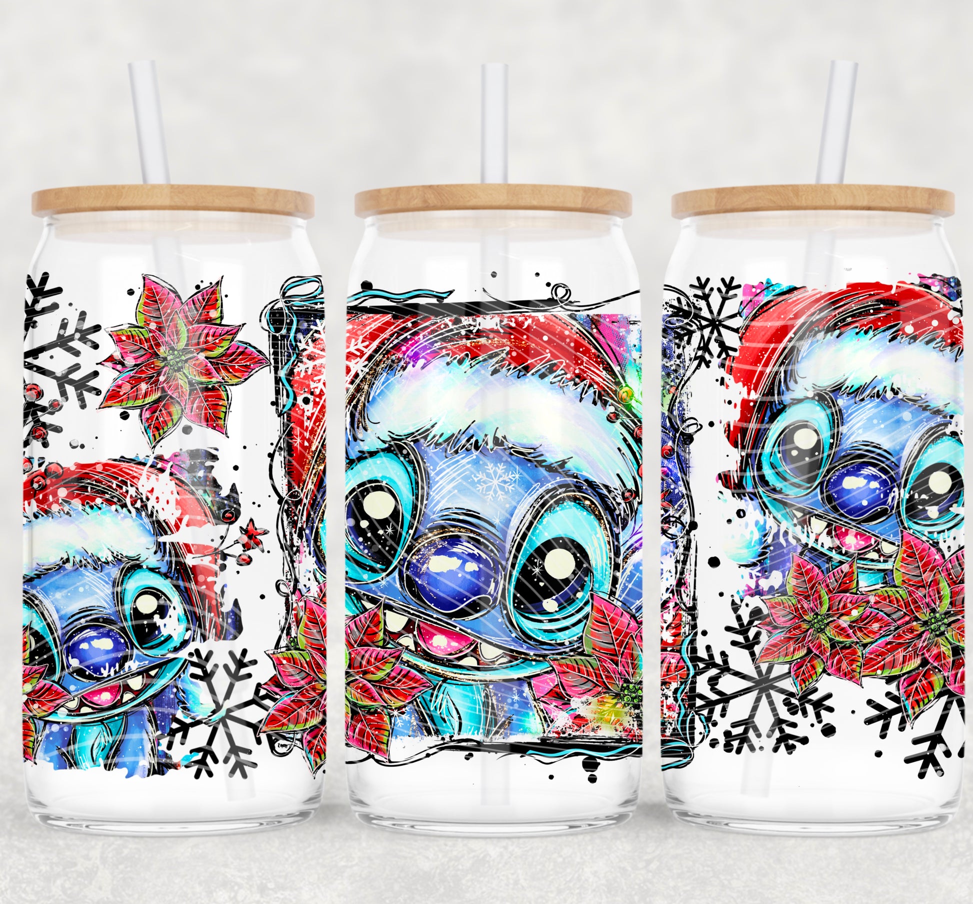 Christmas Blue Guy UV DTF Libbey Transfer | Trendy Christmas Libbey Wrap | Ready to Transfer | High Quality | Waterproof UV Transfer