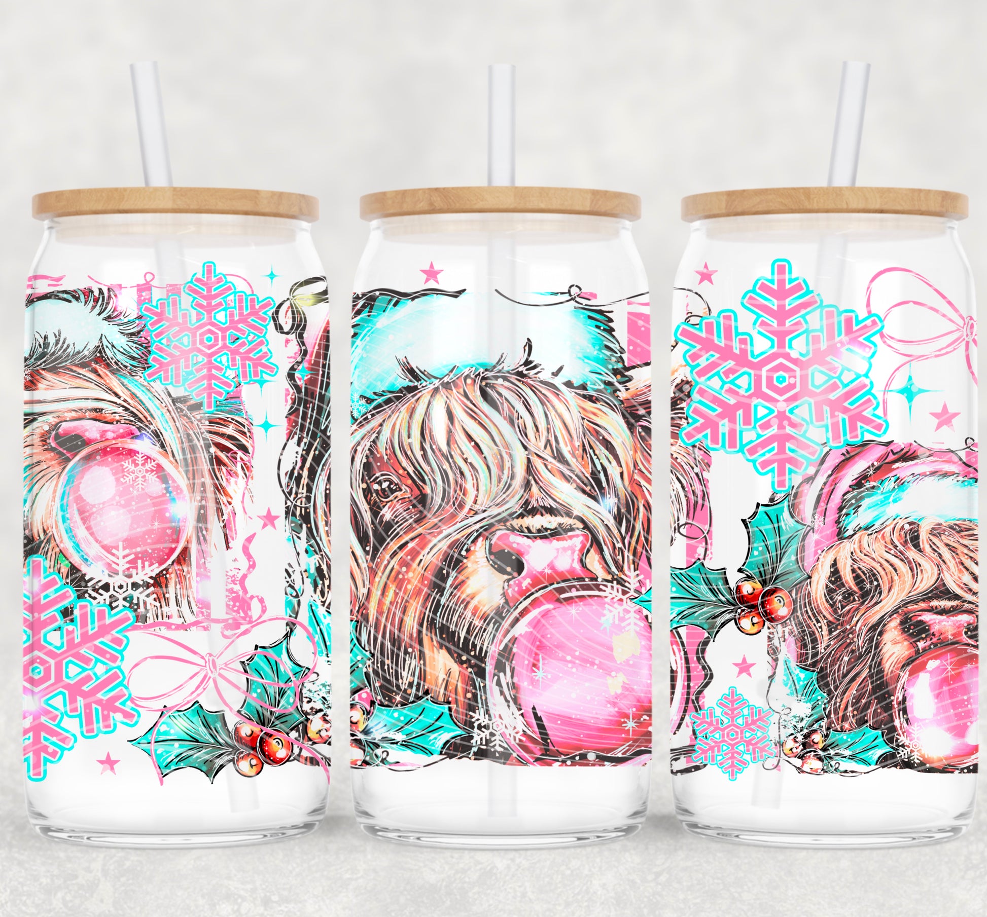 Christmas Cow UV DTF Libbey Transfer | Trendy Christmas Libbey Wrap | Ready to Transfer | High Quality | Waterproof UV Transfer