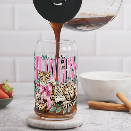 Flawless Cheetah Libbey Wrap UV DTF Transfer, 16oz Glass Can Wrap, Pink Bow Leopard Tumbler Wrap, Ready to Apply