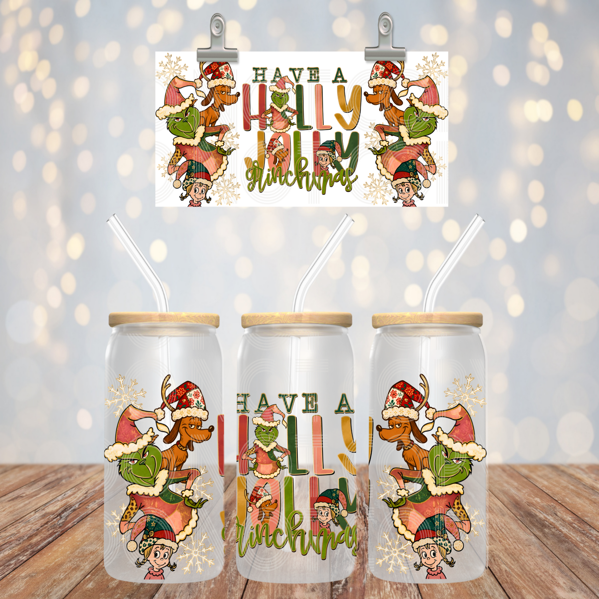 Have a Holly Jolly Christmas UV DTF Libbey Transfer | Trendy Christmas Libbey Wrap | Ready to Transfer | High Quality | Waterproof UV Transfer