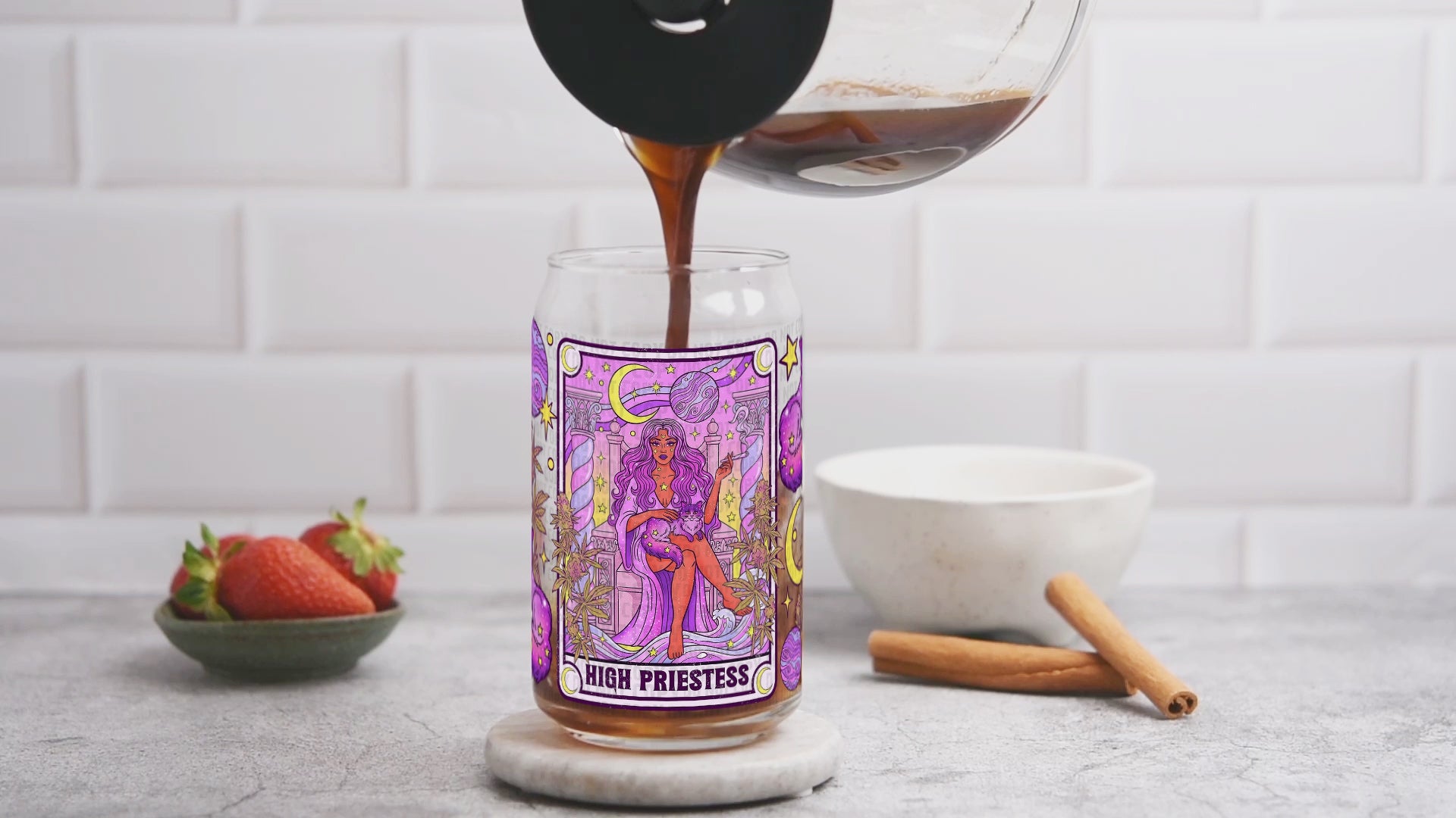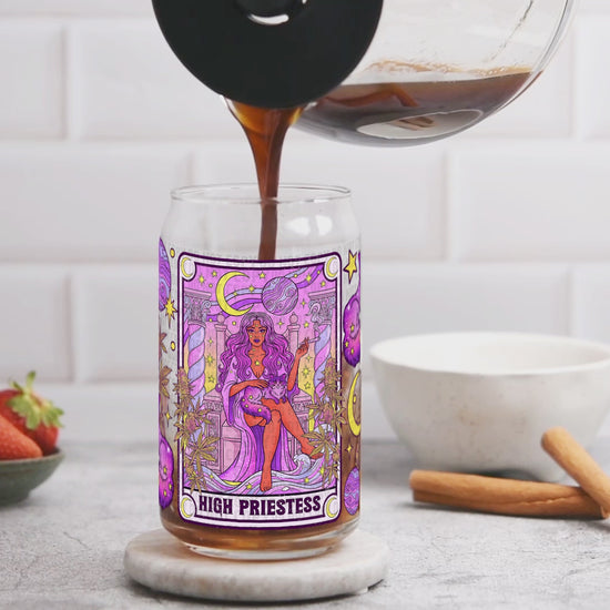 High Priestess UV DTF Cup Wrap | Witchy Glass Can Wrap | Celestial Cat Tumbler Decal | Mystic Tarot Style Cup Wrap