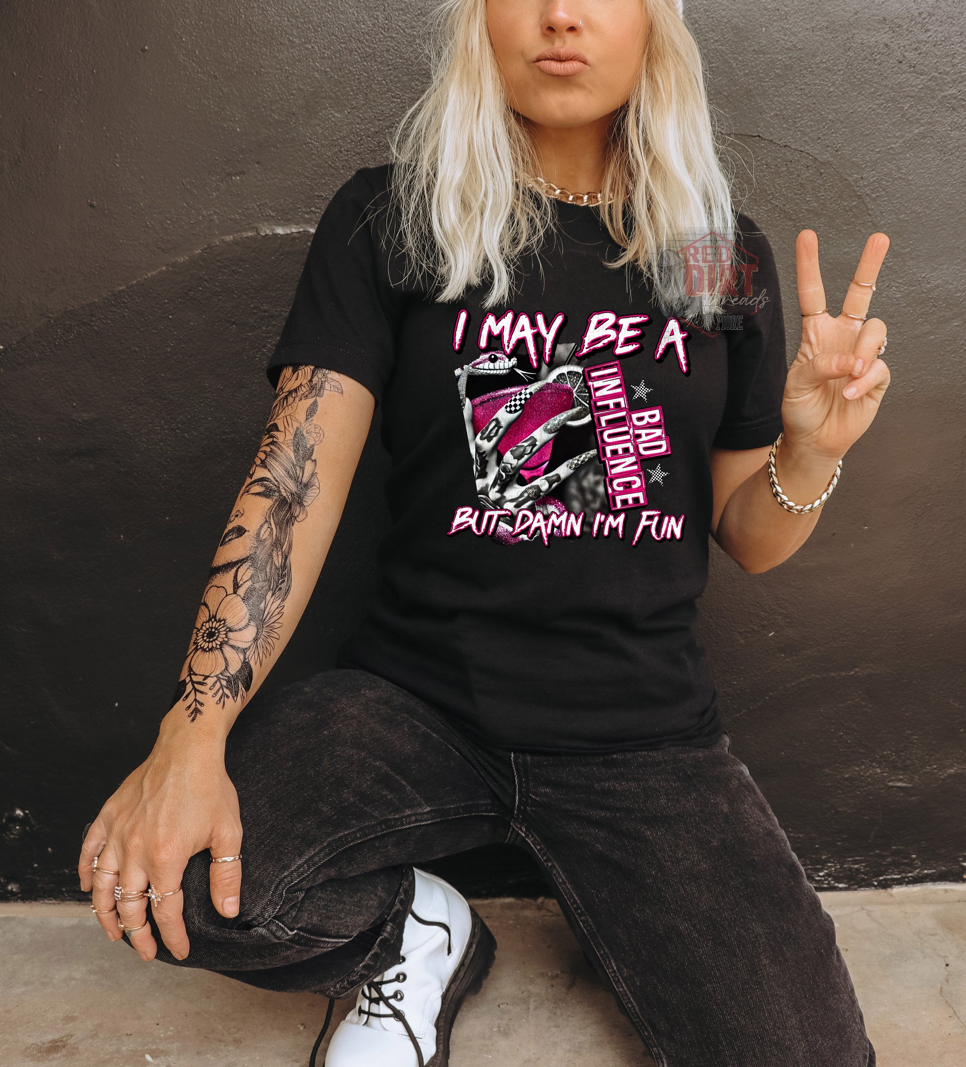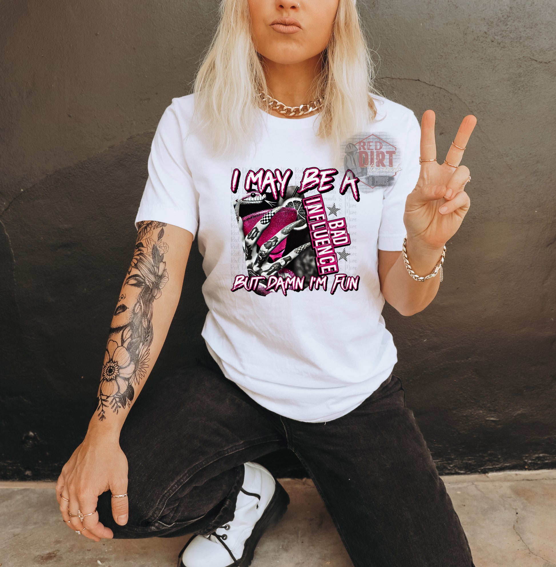 I May Be A Bad Influence But Damn I'm Fun DTF Transfer | Trendy Snarky DTF Transfer | High Quality Image Transfers | Ready to Press | Fast Shipping