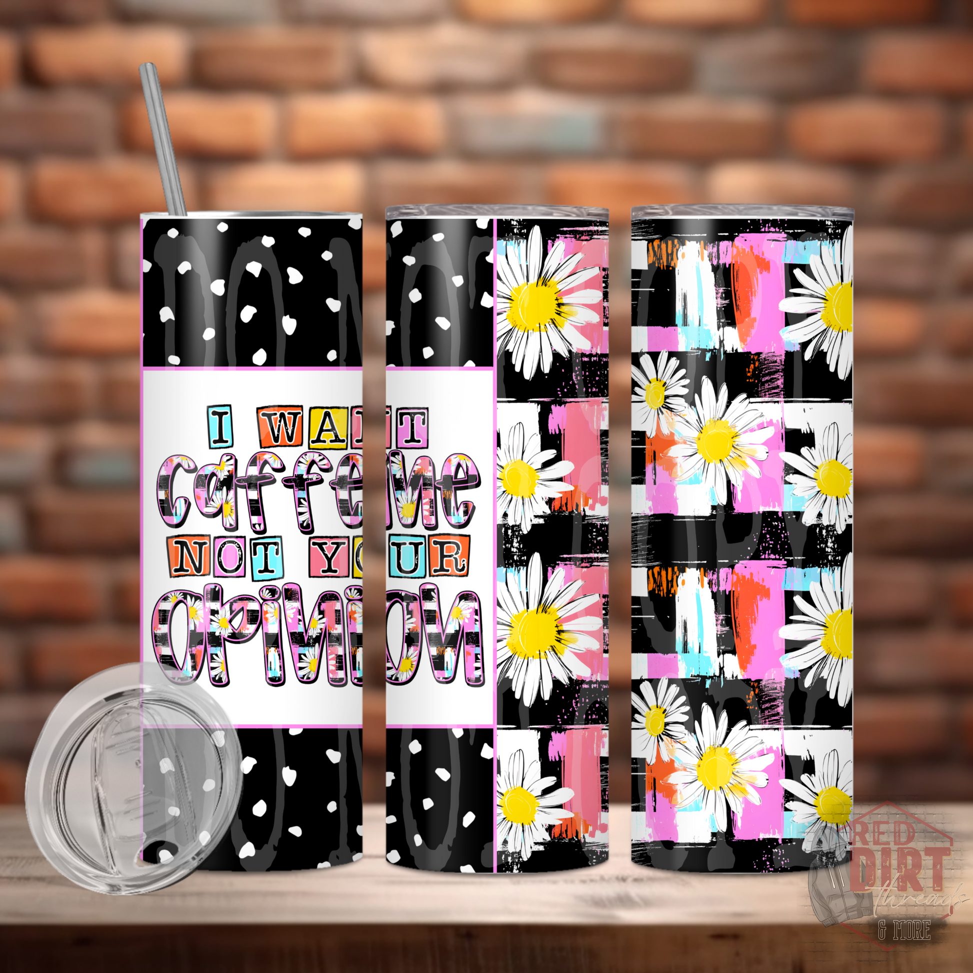 I Want Caffeine Not Your Opinion Insulated Tumbler with Plastic Lid and Sealed Reusable Straw | Trendy Snarky Cup | Hot/Cold Tumbler