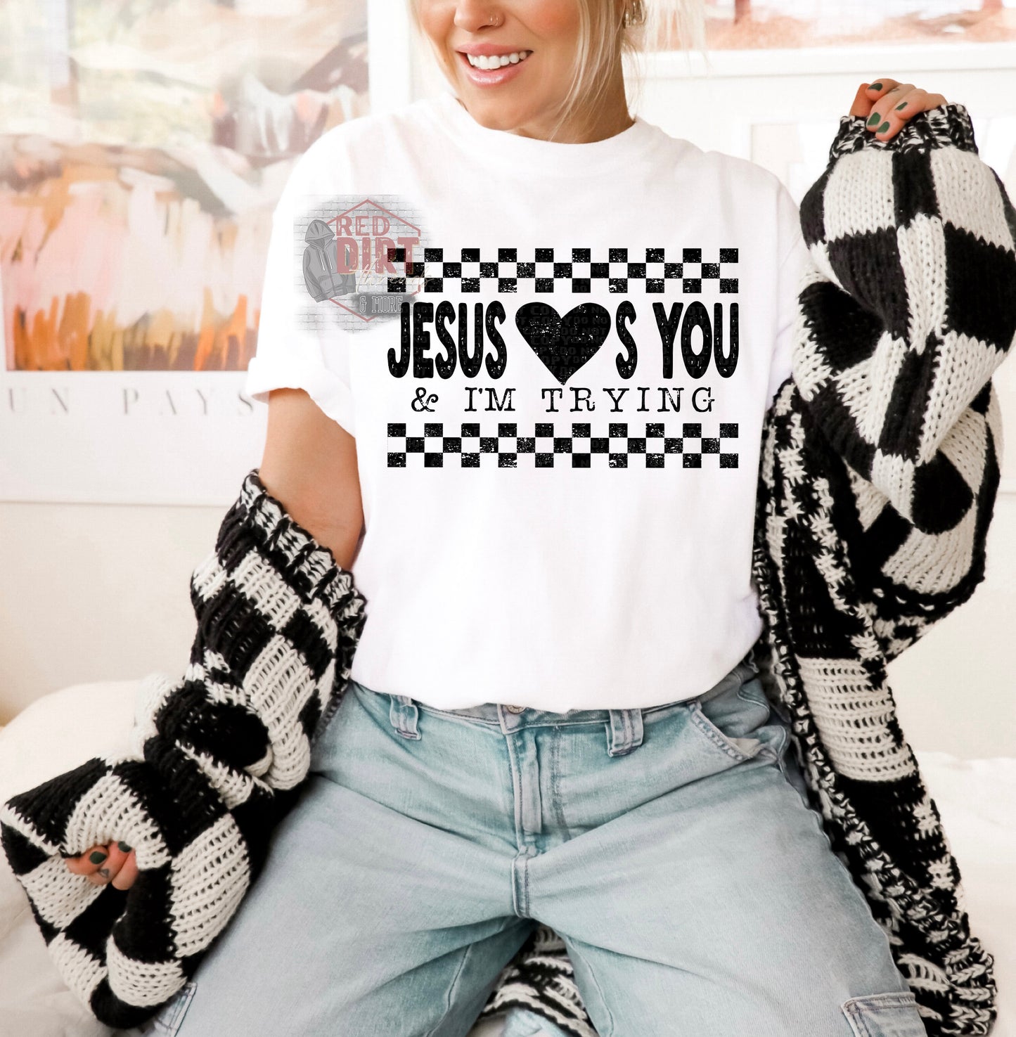 Jesus Loves You and I'm Trying T-Shirt | Trendy Christian Shirt | Fast Shipping | Super Soft Shirts for Women/Kid's