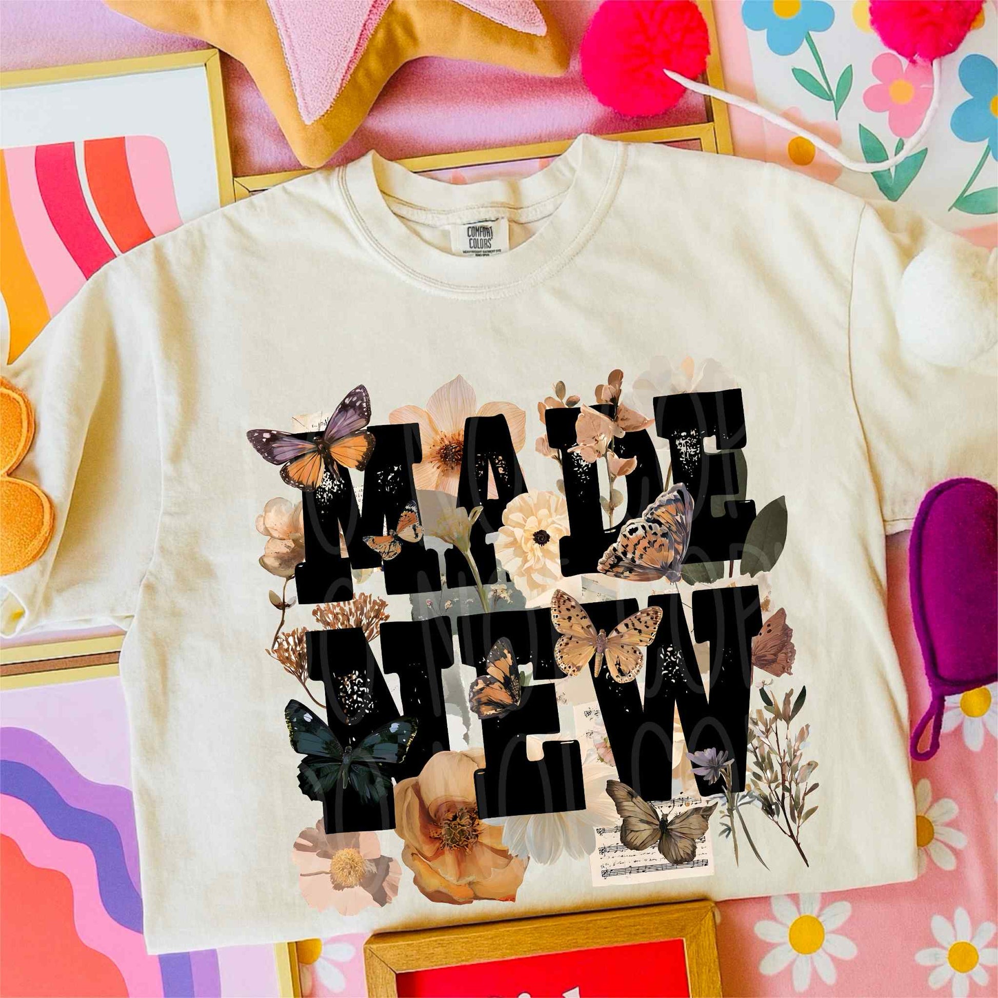 Made New DTF Transfer, Faith DTF Transfer, Christian DTF, Religious Shirt Transfer, Butterfly Floral Faith Design, Ready to Press Transfer