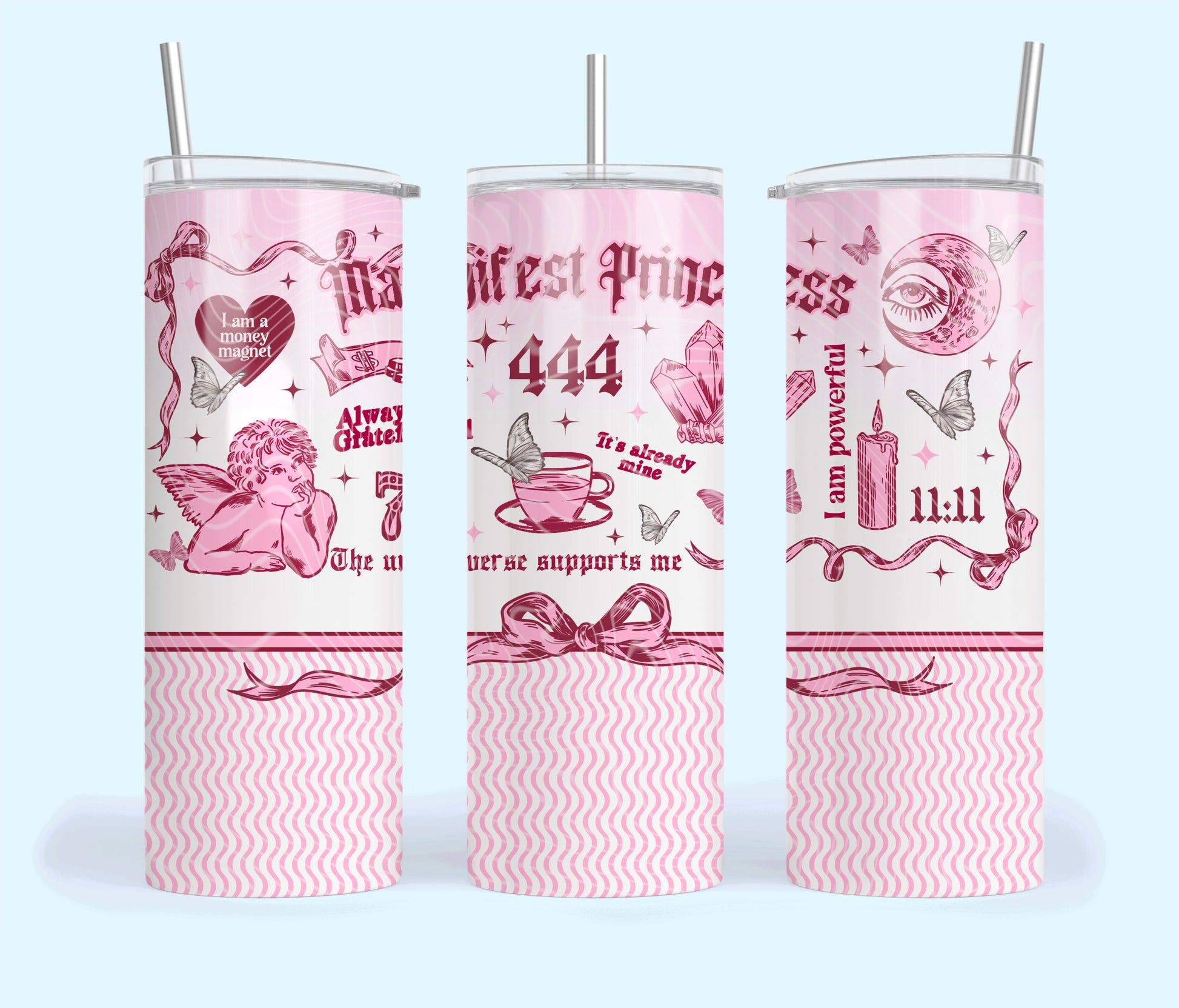 Manifest Princess Insulated Tumbler with Plastic Lid and Sealed Reusable Straw | Trendy Valentine's Day Cup | Hot/Cold Tumbler