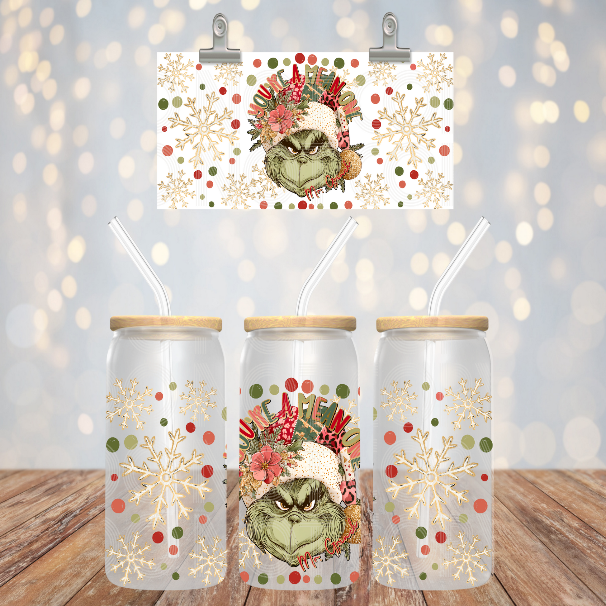 Mean One UV DTF Libbey Transfer | Trendy Christmas Libbey Wrap | Ready to Transfer | High Quality | Waterproof UV Transfer
