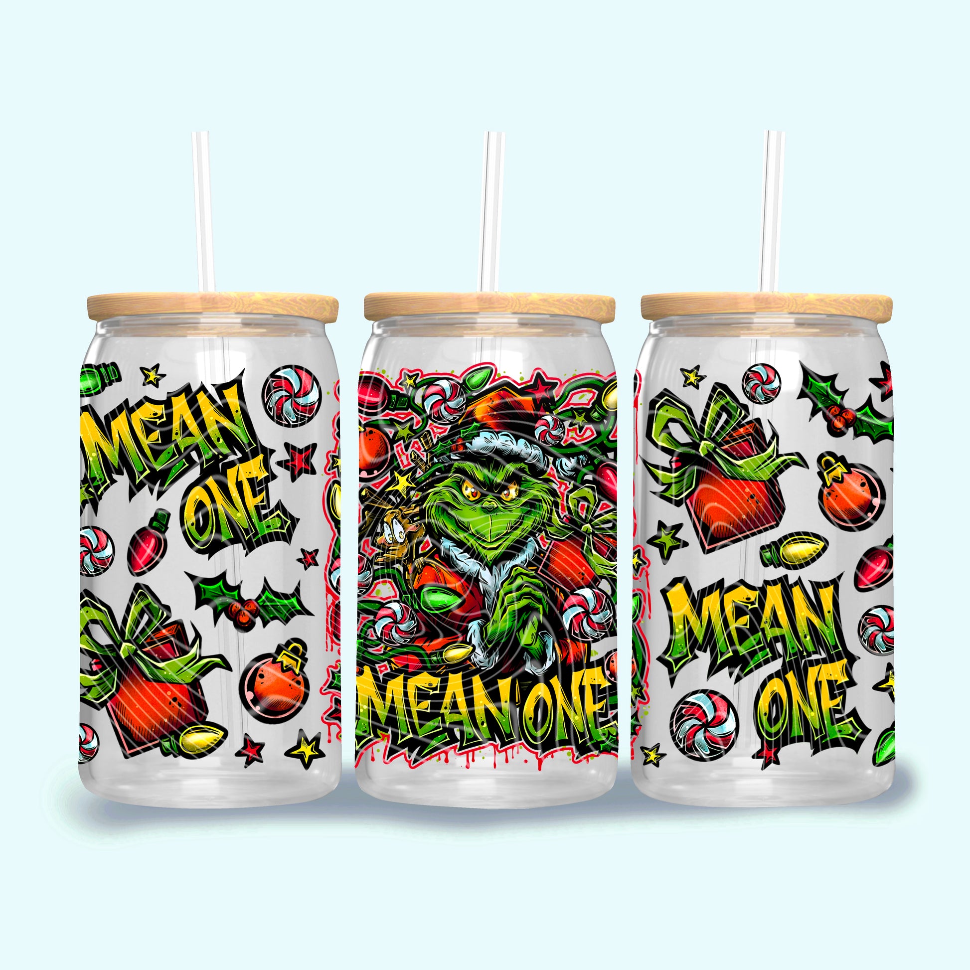 Mean One UV DTF Libbey Transfer | Trendy Christmas Libbey Wrap | Ready to Transfer | High Quality | Waterproof UV Transfer