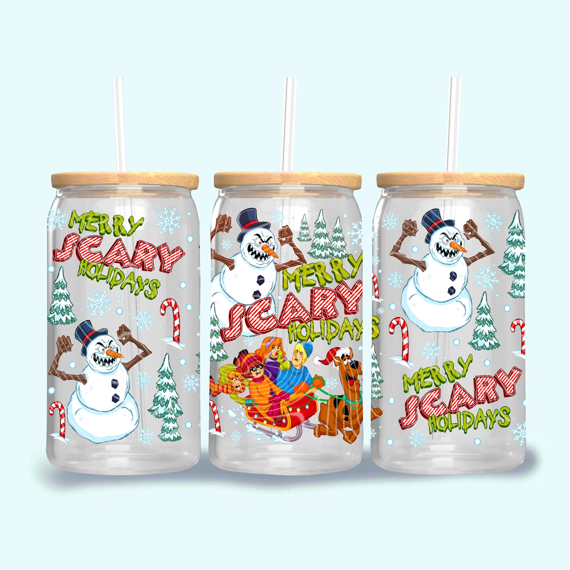 Merry Scary Holidays UV DTF Libbey Transfer | Trendy Christmas Libbey Wrap | Ready to Transfer | High Quality | Waterproof UV Transfer