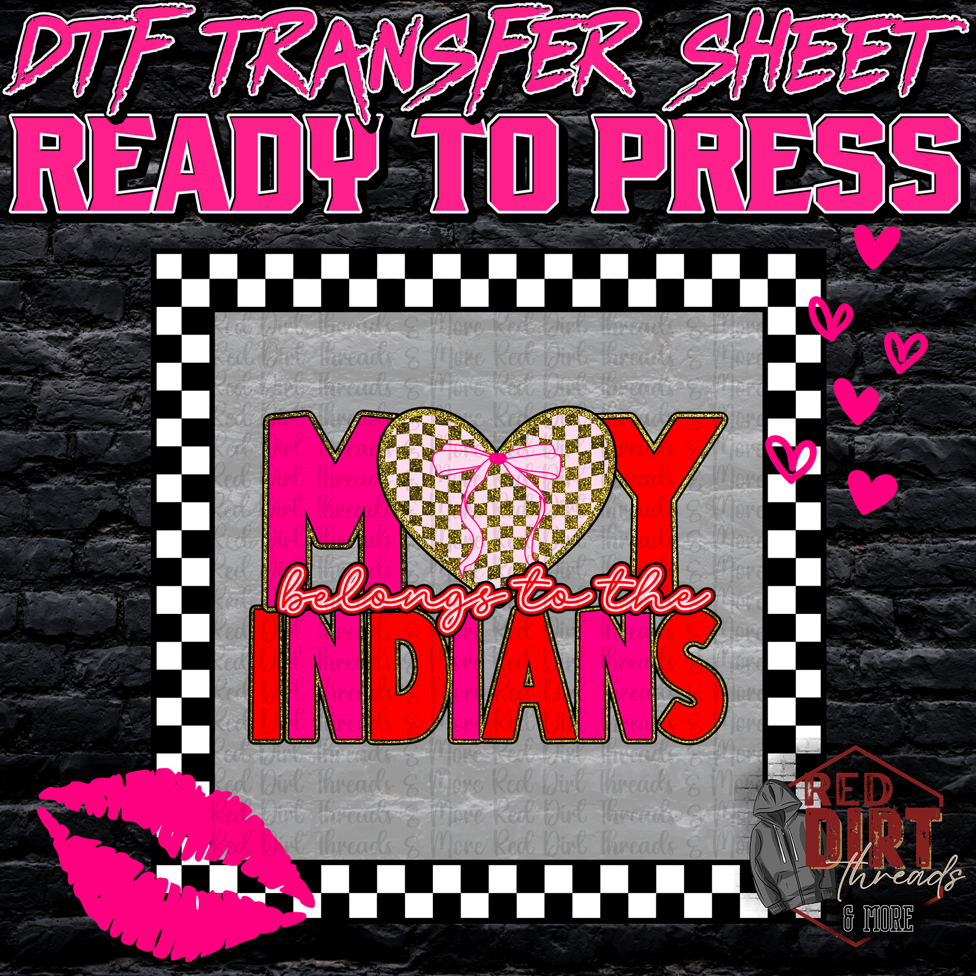 My Heart Belongs to the Indians DTF Transfer | Trendy Valentine's Day DTF Transfer | School Spirit Transfer | Ready to Press | High Quality DTF Transfers | Fast Shipping