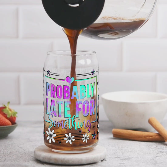 Probably Late For Something Libbey Wrap, Funny Sarcastic Glass Can Wrap, Relatable Quote Cup Wrap Transfer, UV DTF Wrap, Red Dirt Transfers