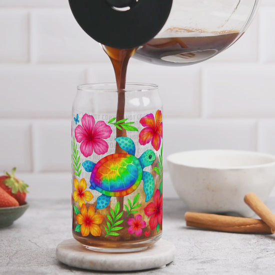 Rainbow Turtle UV DTF Transfer, Tropical Turtle Cup Wrap, 16 oz Libbey Glass Wrap, Colorful Sea Turtle Tumbler Decal, Summer Floral Wrap