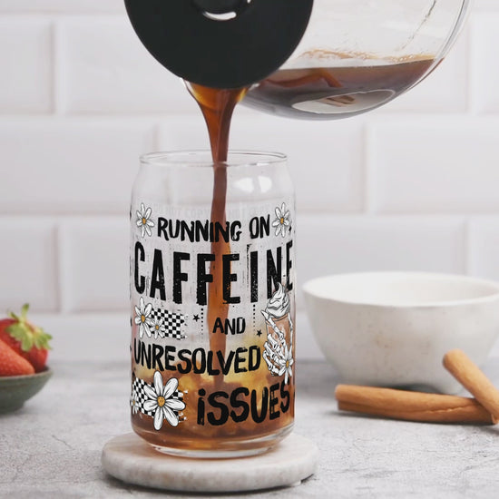 Running On Caffeine Libbey Wrap, Funny Coffee Glass Can Wrap, Sarcastic Cup Wrap Transfer, UV DTF Wrap, Red Dirt Transfers