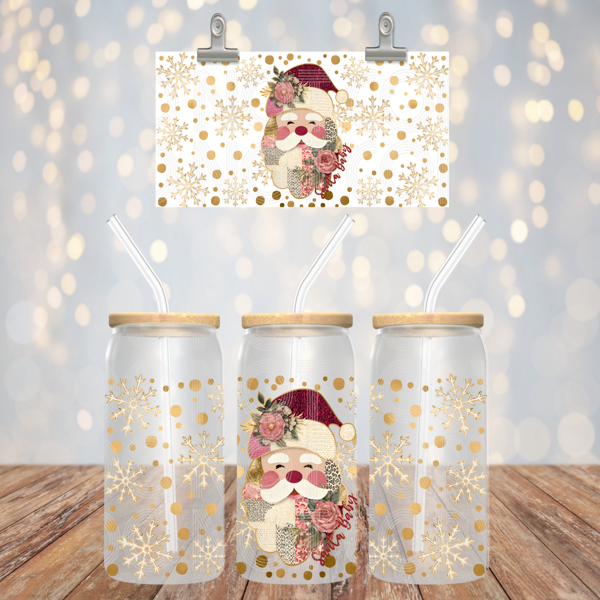 Santa UV DTF Libbey Transfer | Trendy Christmas Libbey Wrap | Ready to Transfer | High Quality | Waterproof UV Transfer