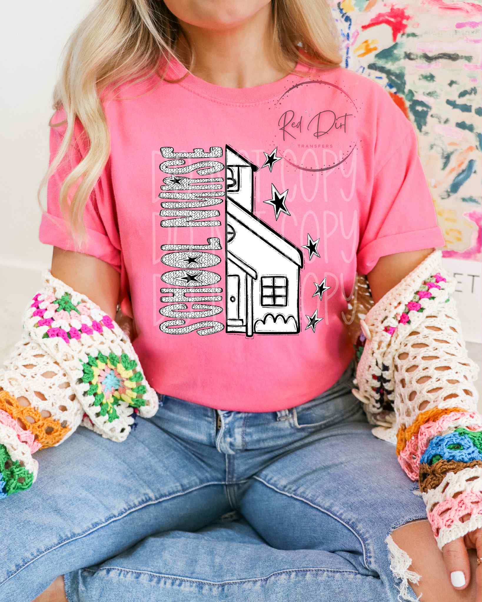 This listing is for the Direct to Film Transfer. If you need a T-shirt with this design and can't find it listed within the website, please don't hesitate to reach out and I'll send it to you! If the picture includes a sleeve or pocket, you will need to purchase that separately. Just choose the sleeve/pocket and add it to cart along with your main transfer. I will size the sleeve/pocket according to the size of the design ordered. I normally do 2-3 inches wide for Infant-Youth and 4-5 inches wide for adult-plus. Direct to Film transfers are printed on a 24-inch commercial DTF printer. They do not contain any embellishments such as rhinestones, embroidery, or glitter, although some are designed to look like they have those items. Processing times are 1-3 business days. Shipping times vary, depending on which shipping option you choose. We do not offer refunds on these as they are made to order, however, you can view our reviews listed on the home page. If there is a problem with your order, please don't hesitate to reach out to us! We are only human, and mistakes happen! If it is our fault, we will reprint it for you asap!