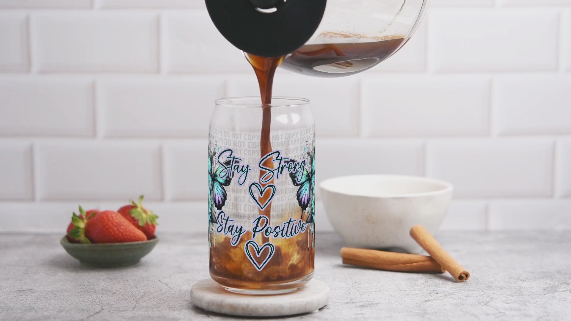 Stay Strong Stay Positive UV Dtf Libbey wrap | butterfly sunflower cup wrap | uv dtf transfer for glass cans | Red Dirt Transfers