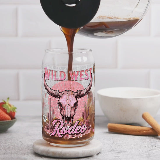 Wild West Rodeo UV Dtf Libbey wrap | western skull bow cup wrap | uv dtf transfer for glass cans | Red Dirt Transfers