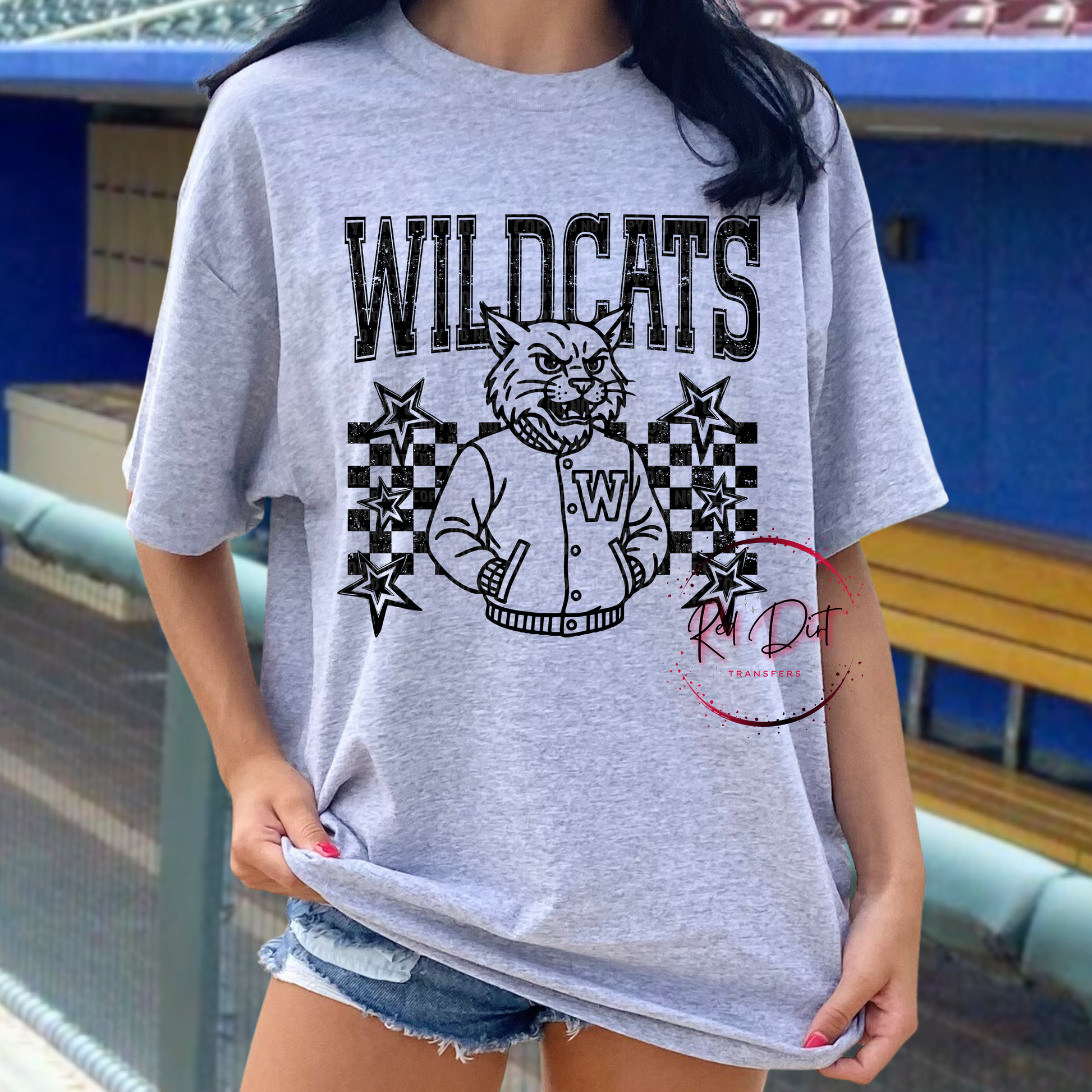 Wildcats Letterman Stars DTF Transfer | Trendy School Spirit DTF Transfer | High Quality Image Transfers | Ready to Press | Instant Peel