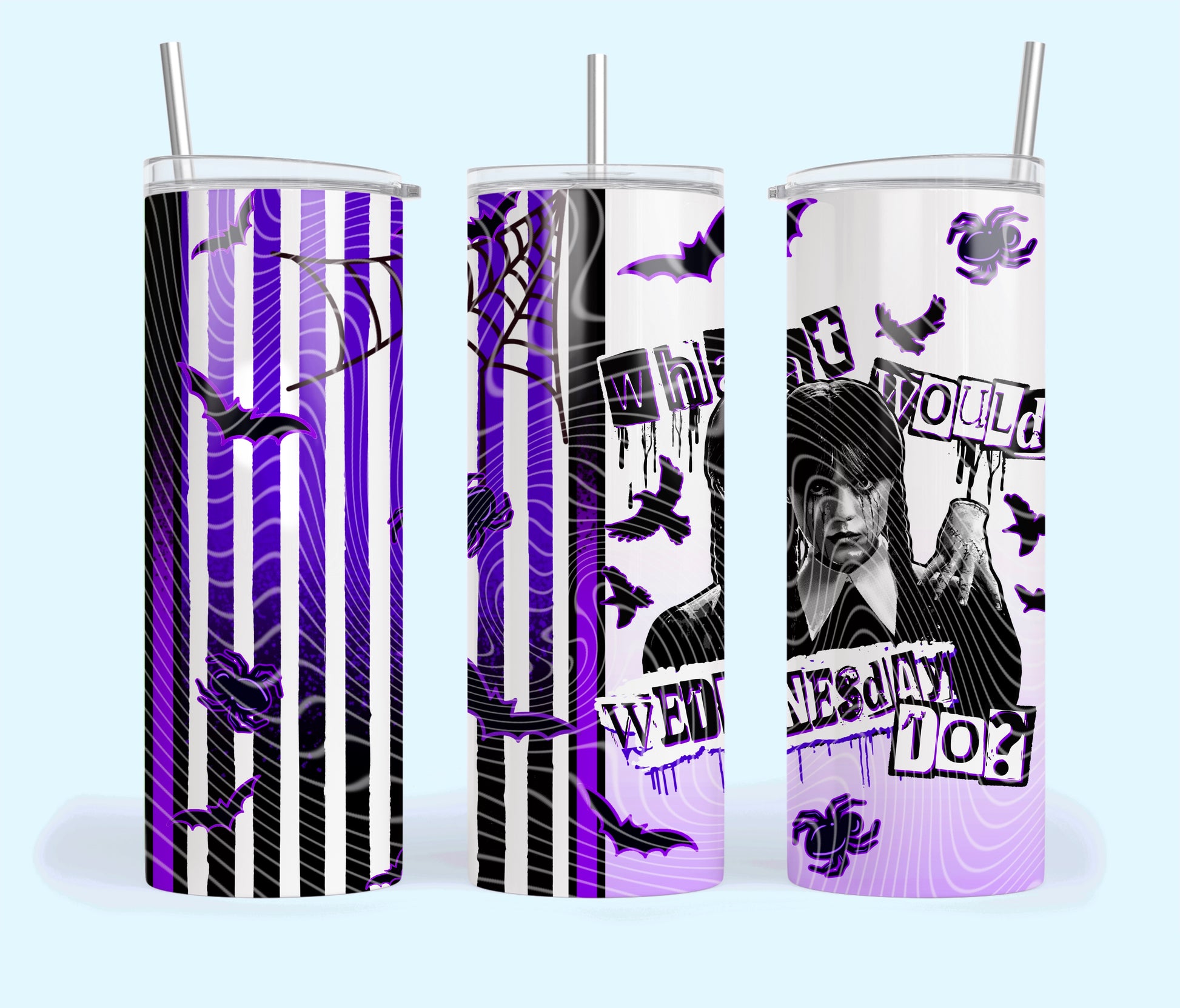 WWWD Purple Insulated Tumbler with Plastic Lid and Sealed Reusable Straw | Trendy Halloween Cup | Hot/Cold Tumbler